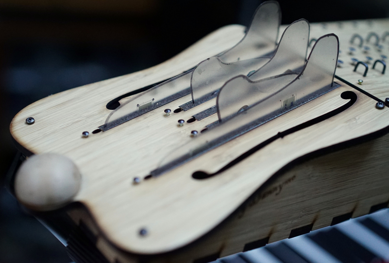 My latest invention, the Kalichord Strum. A new take on the Kalichord, this one has been designed to designed to offer keyboardists an intuitive and expressive way to play rhythmic strumming parts in real time. The Kalichord Strum was a finalist in the 2016 Guthman Musical Instrument Competition.